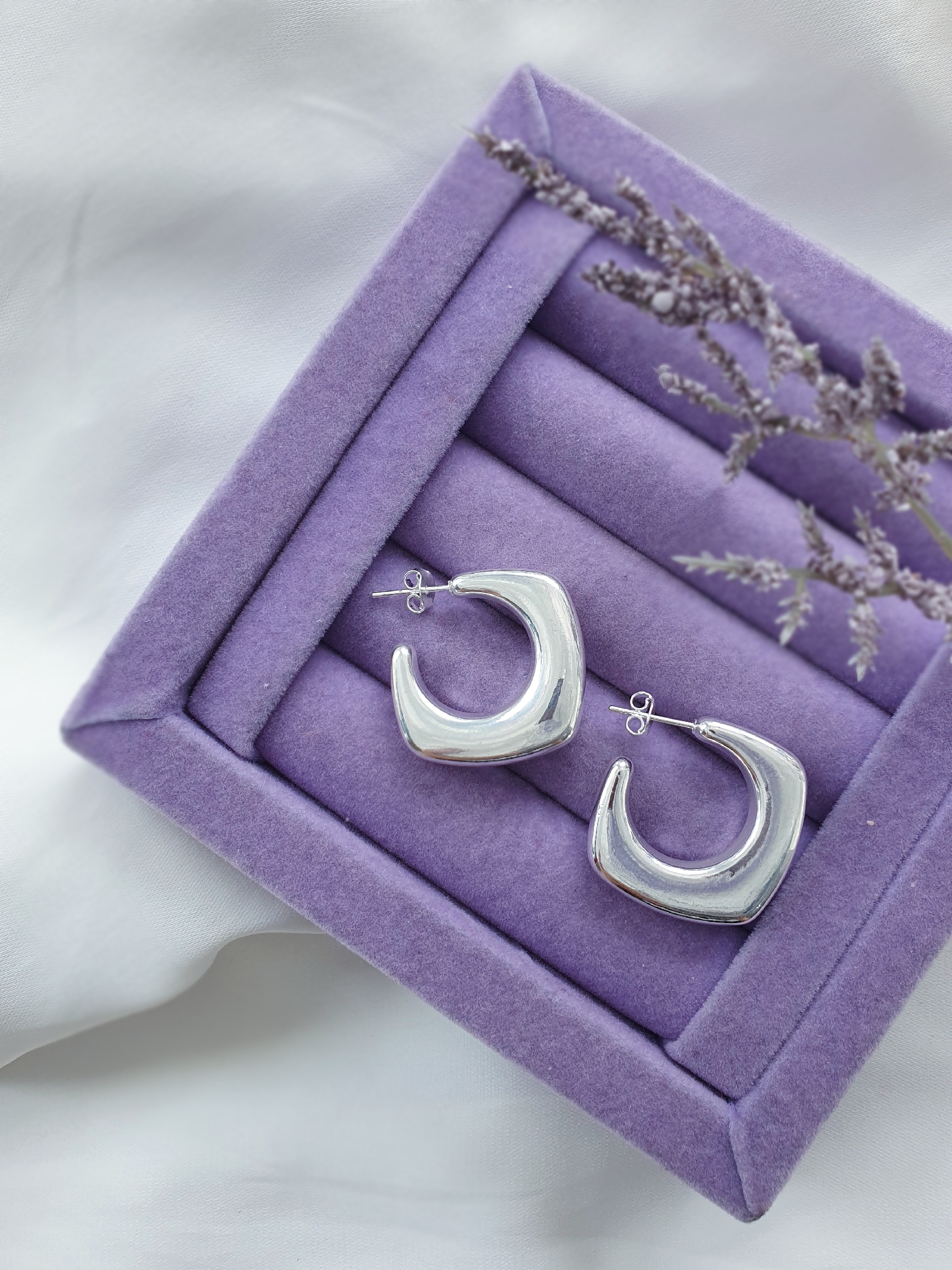 Argola Quadrada Luna ♡ banhado a 50 milésimos de prata e hipoalergênico.