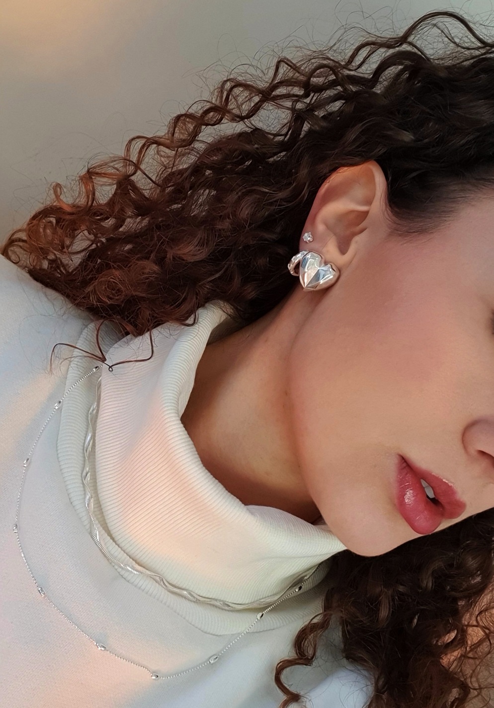 Brinco coração geométrico ♡ banhado a 50 milésimos de prata e hipoalergênico.
