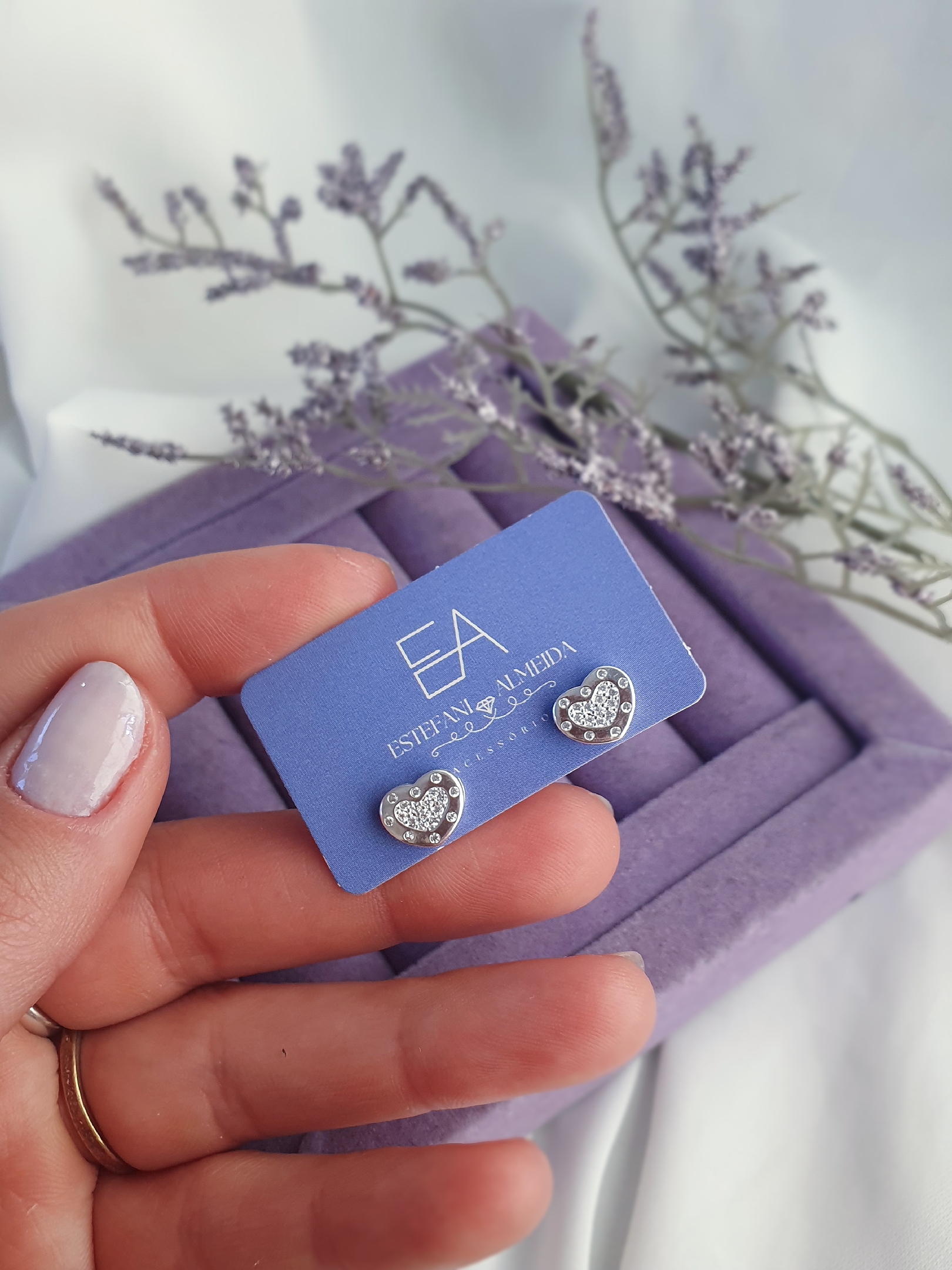 Brinco mini coração cravejado ♡ banhado a 50 milésimos de prata e hipoalergênico.