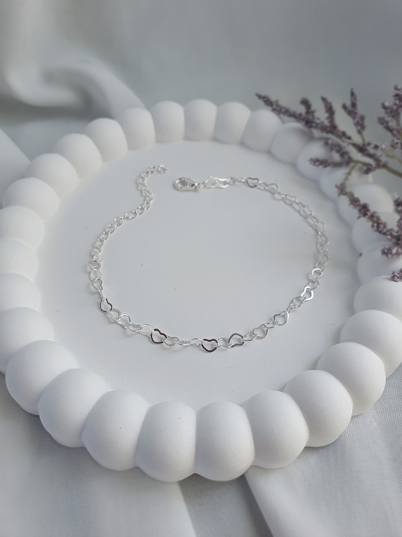 Pulseira elos corações ♡ banhado a 50 milésimos de prata e hipoalergênico.