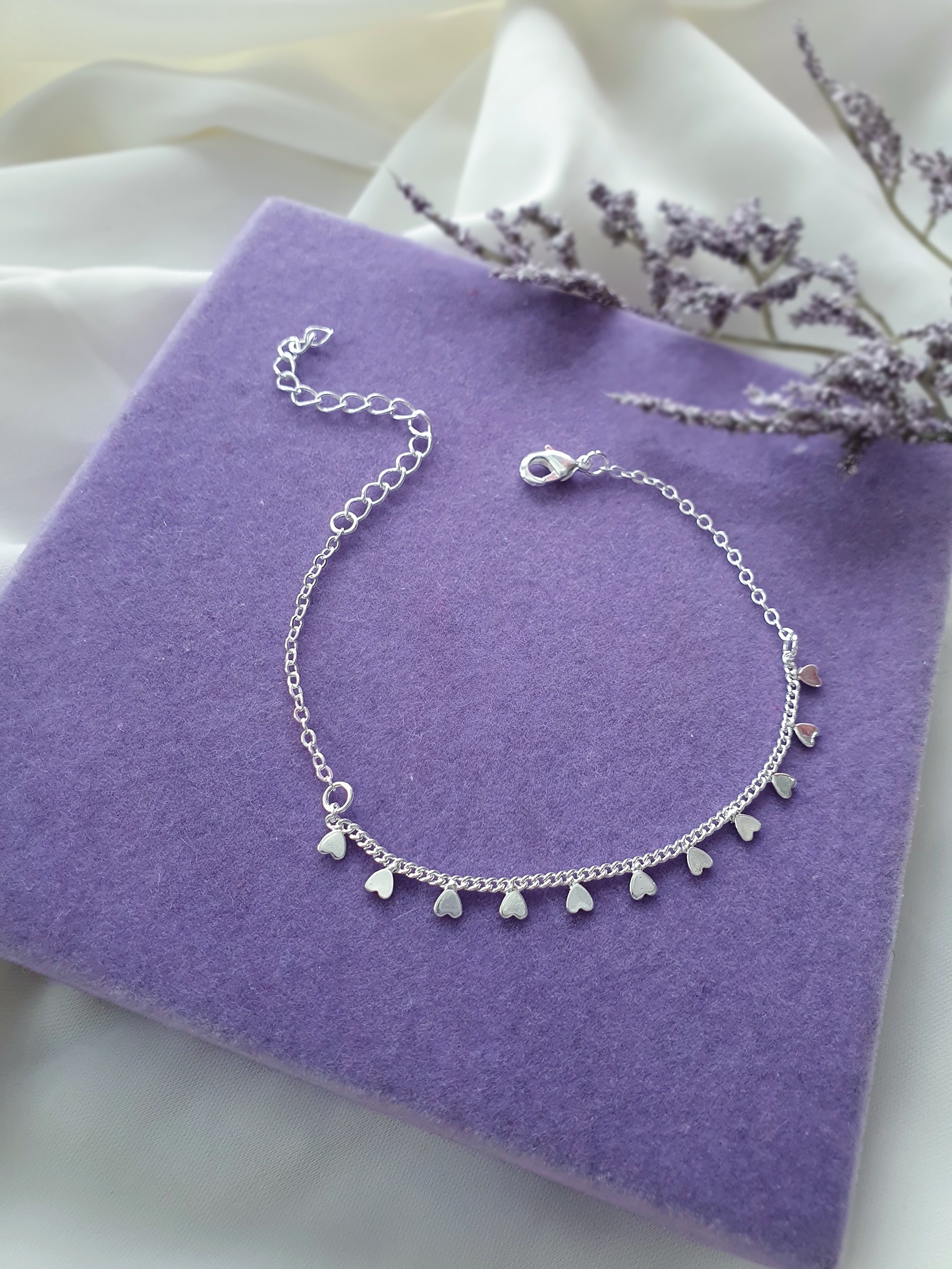 Pulseira mini corações ♡ banhado a 50 milésimos de prata e hipoalergênico.