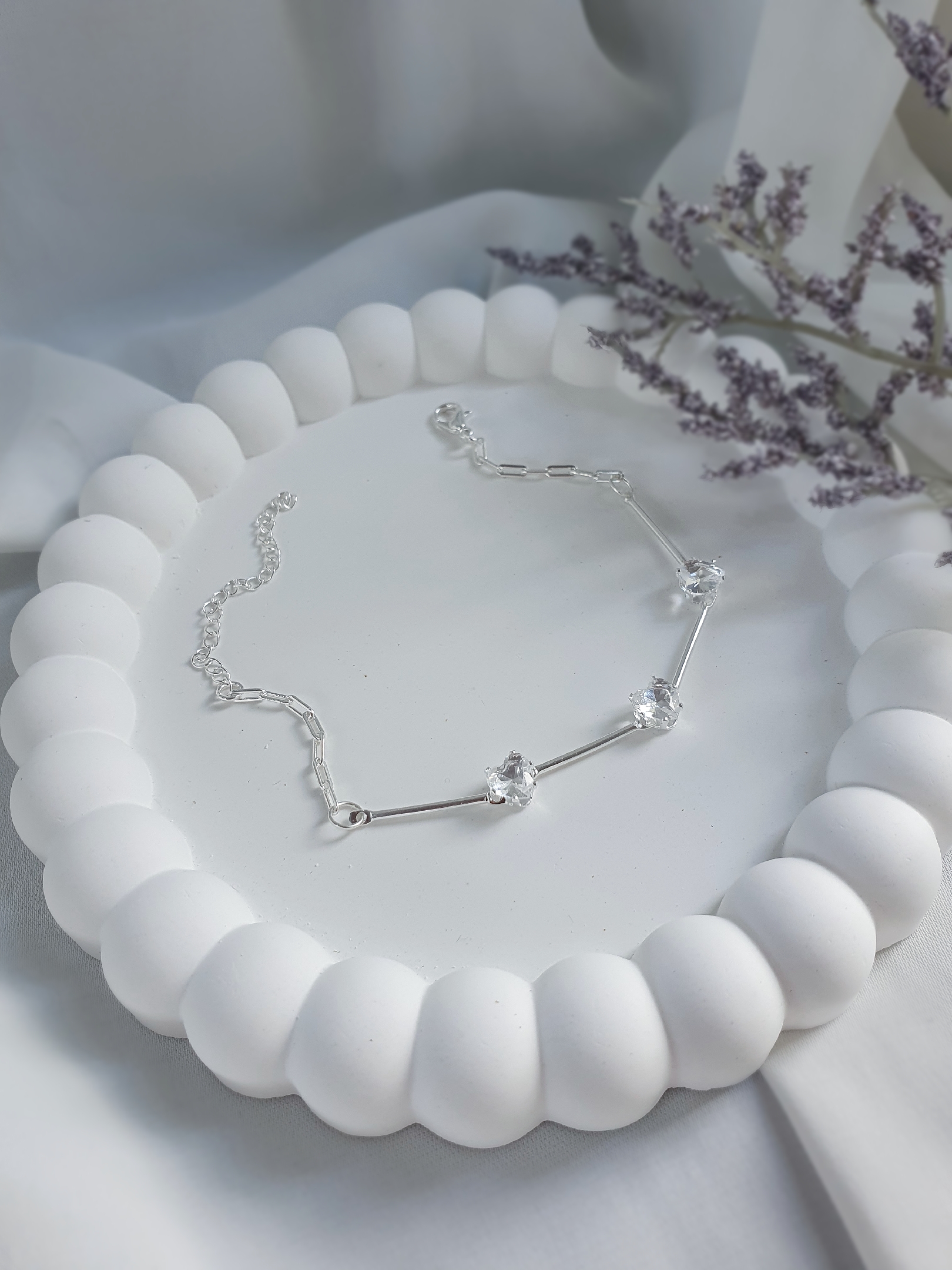 Pulseira três corações ♡ banhado a 50 milésimos de prata e hipoalergênico.